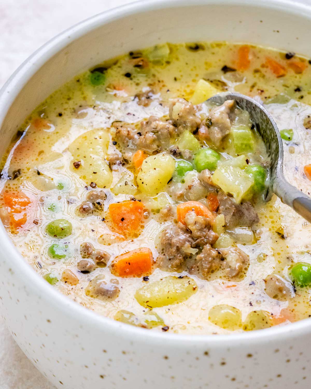 All the cozy flavors of a traditional shepherd’s pie, transformed into a nourishing, hearty soup. Lean beef, vegetables, and savory herbs simmer together for a comforting meal that feels grounding and energizing at the same time.