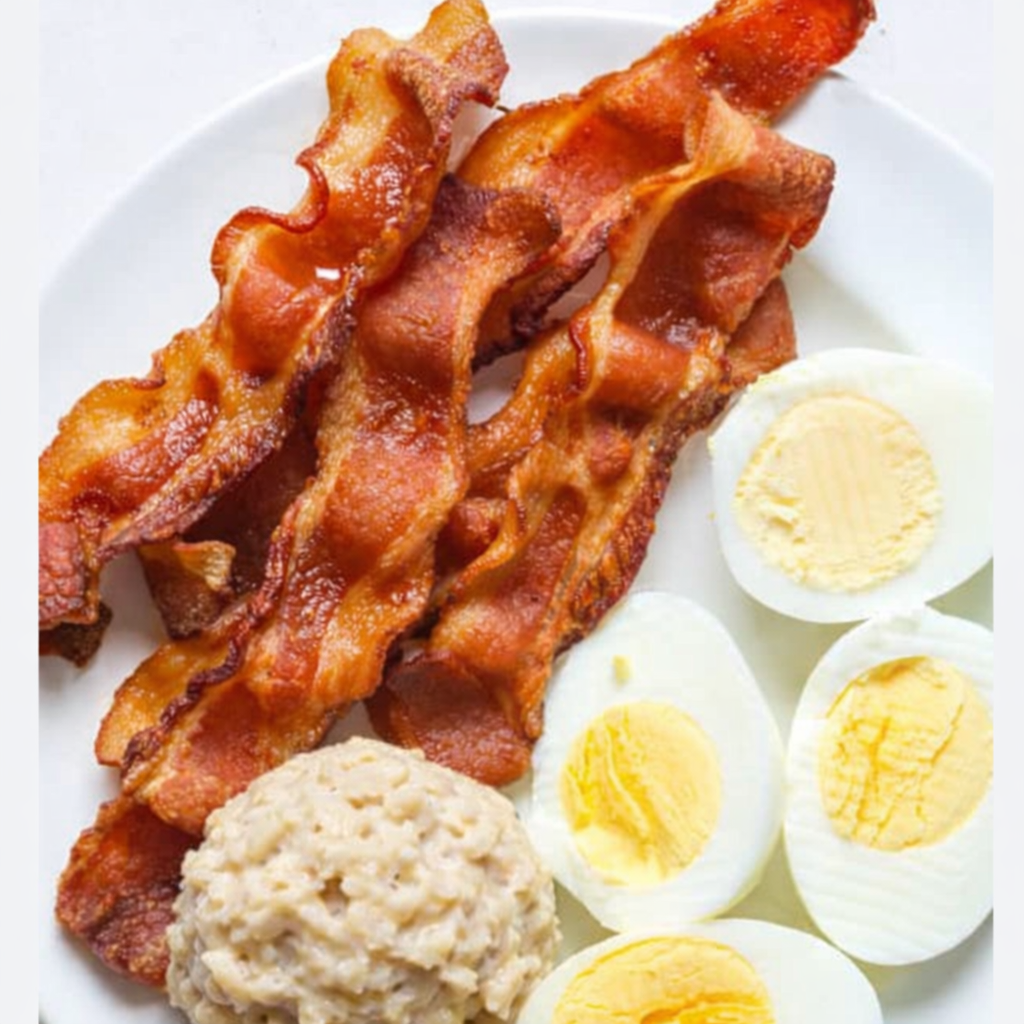 2 hardboiled eggs, cinnamon oatmeal, bacon. Solid fuel.