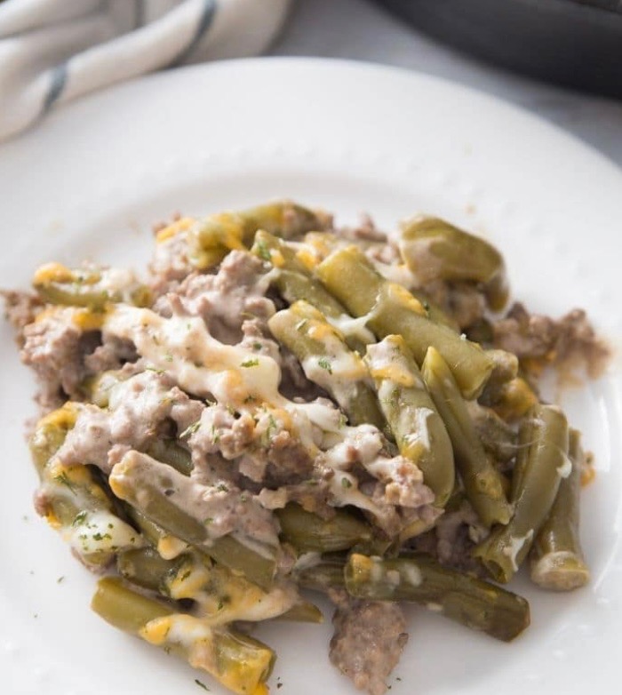 Hearty, savory, cheesy and delicious green bean casserole with ground beef. Perfect balance of creamy, cheesy deliciousness but also packed full of veggies.