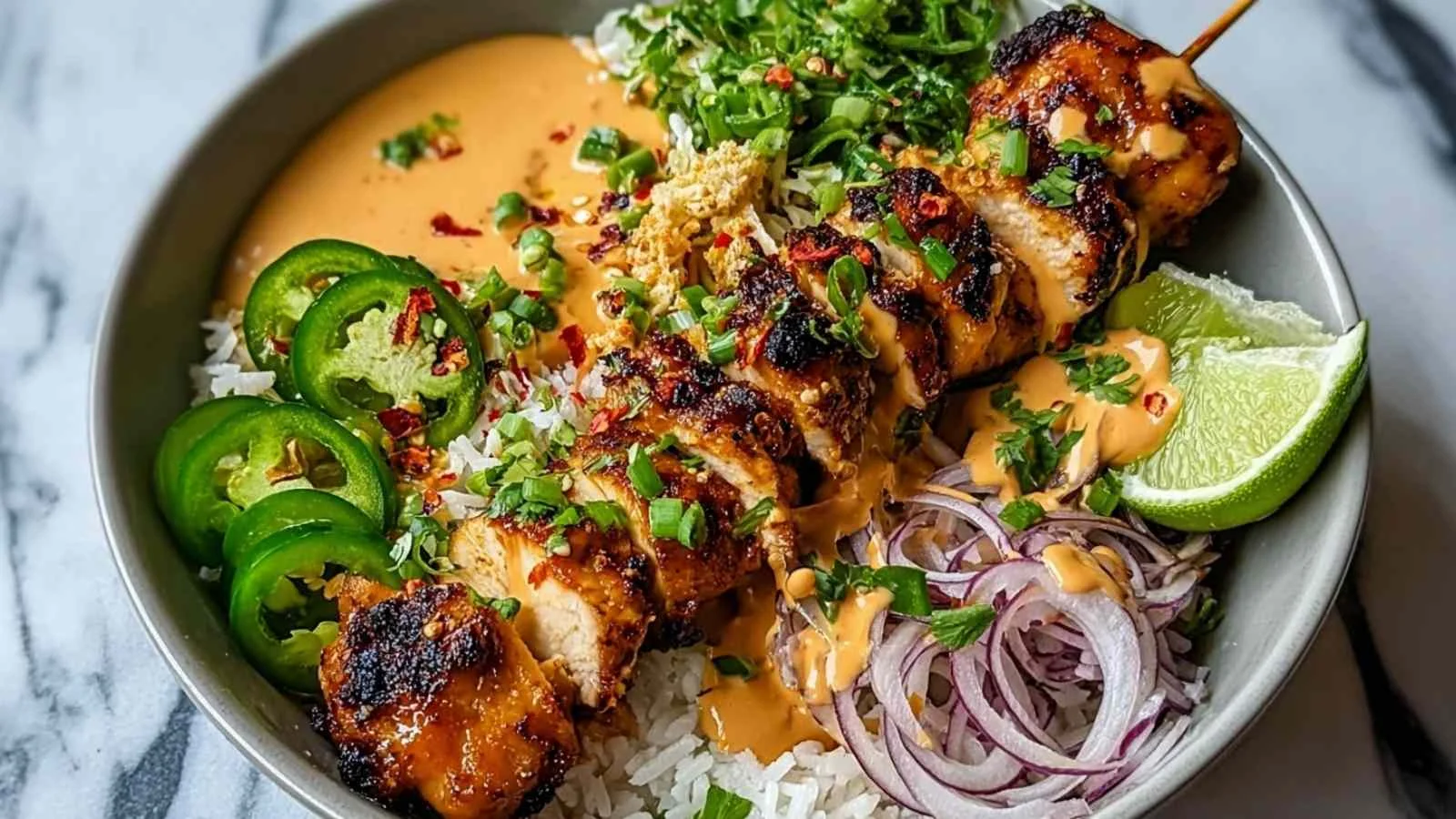 Sweet Chili Chicken Bowl with Coconut Lime Drizzle